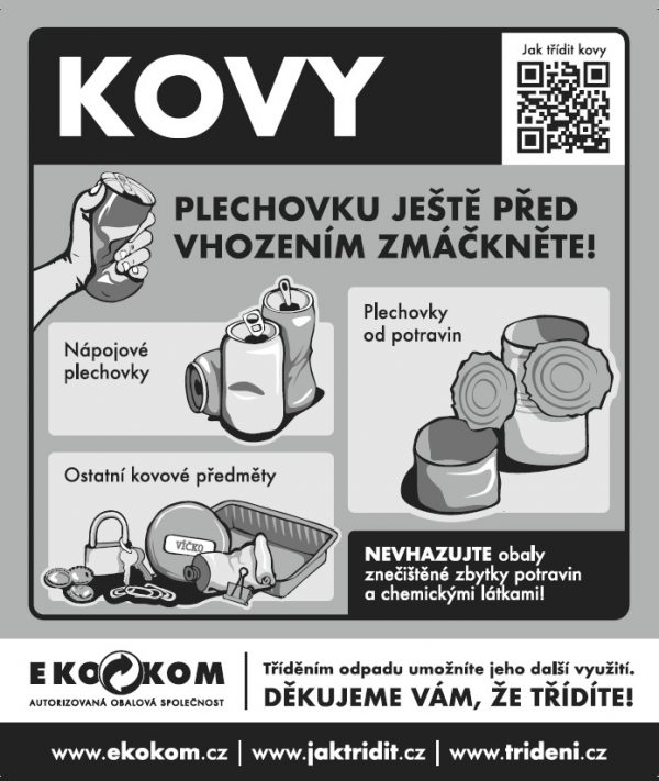 Od 1. 1. 2026 je zaveden multikomoditní sběr, kdy konzervy od potravin a nápojové plechovky můžete třídit do žlutých nádob u svých nemovitostí společně s plasty a kartonovými obaly.